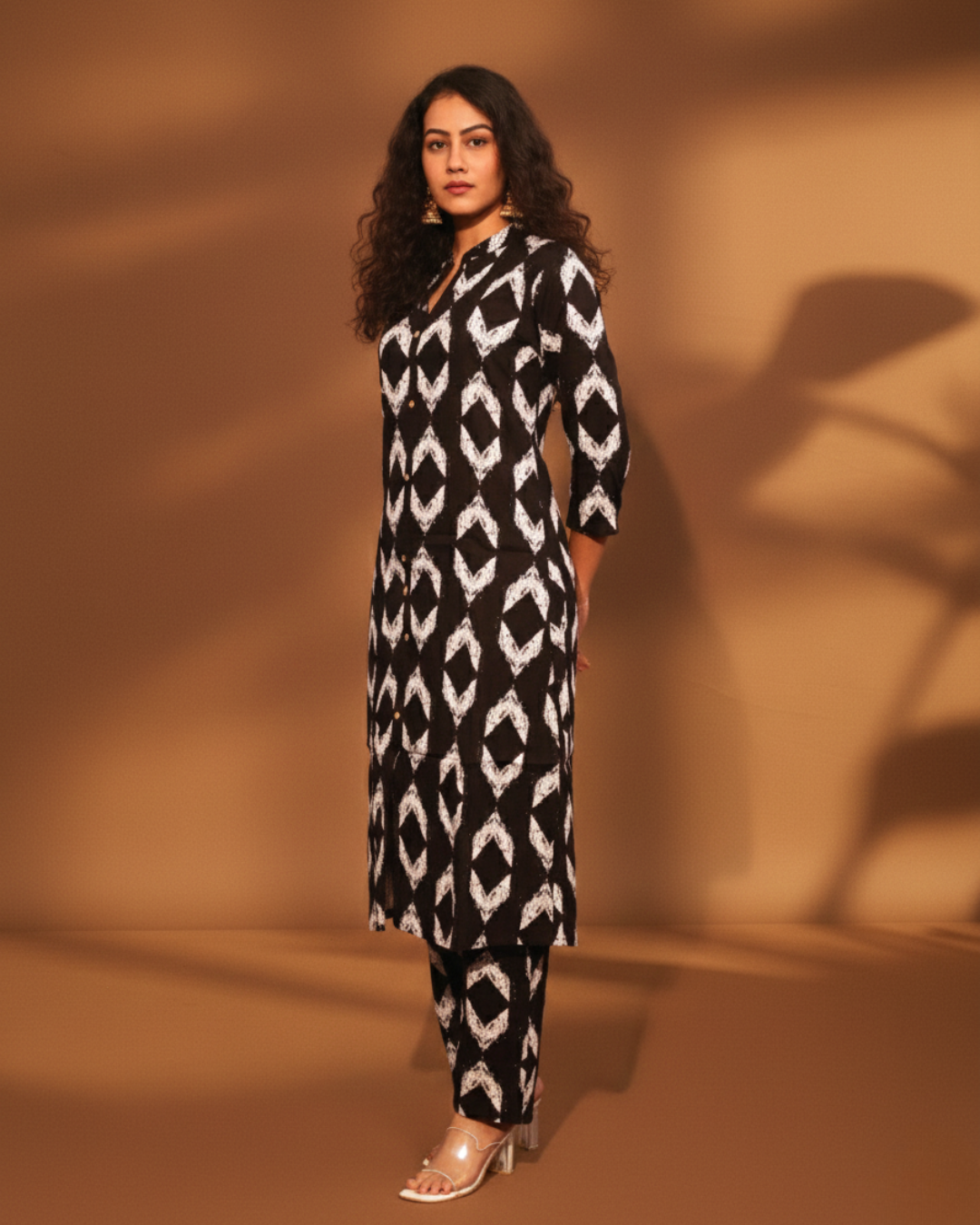 Make a bold fashion statement with this chic Co-ord Set, designed for the modern woman who values both comfort and style. Featuring a perfectly matched top and bottom, this set is tailored to flatter every body type while offering ease of movement. Ideal for casual outings, brunch dates, or travel, this outfit blends contemporary design with everyday functionality.